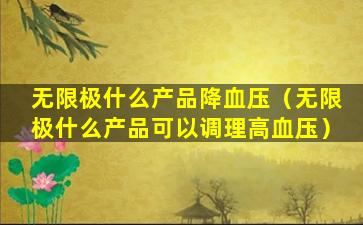 关于降血压的产品,无限极可能会有一些产品声称有助于调节血压,但是需要注意的是,任何声称能够降低血压的产品都应该在医生的指导下使用。高血压是一种需要专业医疗管理的慢性疾病,通常需要通过药物治疗、饮食调整、运动和生活方式的改变来控制。