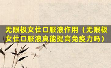 保健品的效果因人而异,且通常缺乏严格的科学证据支持。在中国,保健品不能宣称具有治疗疾病的功能,只能作为辅助调节身体机能的产品。因此,无限极女仕口服液可能含有一些对健康有益的成分,如维生素、矿物质、植物提取物等,但它们对免疫力的具体影响需要更多的科学研究来证实。