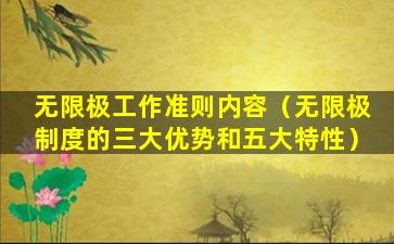 无限极(Infinitus)是一家中国的健康产品公司,隶属于李锦记健康产品集团。无限极的工作准则内容可能包括以下几个方面: