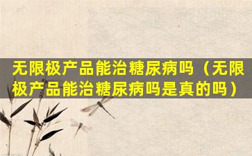 无限极是一家中国的直销公司,主要销售健康食品、个人护理品和家居用品等。关于无限极产品是否能治疗糖尿病,需要明确的是,任何声称能够治疗糖尿病的产品都应该经过严格的科学验证和监管部门的批准。