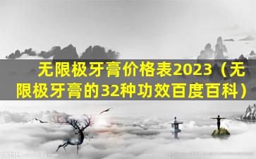 关于“无限极牙膏价格表2023”的具体信息,我无法提供实时的市场数据。无限极是一家中国的健康产品公司,其产品包括牙膏、保健品等。如果您想了解无限极牙膏的价格,建议您直接访问无限极的官方网站或授权的零售商,以获取最准确和最新的价格信息。