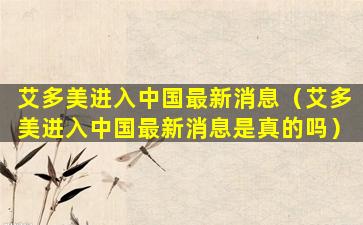 截至我的知识更新日期(2023年),关于“艾多美进入中国”的最新消息,我无法提供确切的信息,因为这需要实时更新的数据。艾多美(Aveda)是一个以植物为基础的美容品牌,隶属于雅诗兰黛公司(Estée Lauder Companies)。如果艾多美有新的市场动态或进入中国市场的计划,通常会通过官方渠道或新闻发布来宣布。