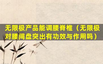 无限极是一家中国的直销公司,主要销售健康食品、个人护理品和家居用品等。关于无限极产品能否调理腰脊椎的问题,需要明确的是,任何健康产品的效果都应基于科学研究和临床试验的证据。