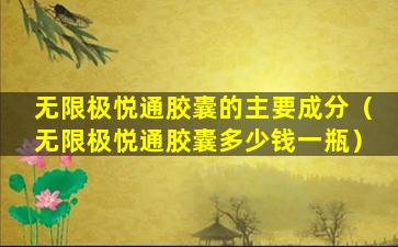 无限极(Infinitus)是一家中国的保健品公司,隶属于李锦记健康产品集团。无限极的产品线包括多种保健品,其中可能包括名为“悦通胶囊”的产品。由于我无法访问最新的数据库,我无法提供确切的“无限极悦通胶囊”的配方和功效信息。