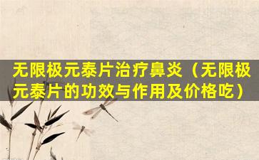 关于“无限极元泰片治疗鼻炎”的说法,首先需要明确的是,任何药物或保健品的使用都应该基于科学研究和临床试验的证据。无限极是一家中国的保健品公司,其产品包括各种营养补充品和健康食品。对于特定疾病如鼻炎的治疗,应当遵循医生的建议,并使用经过批准的药物。