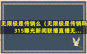 关于“315曝光新闻联播直播无限极”的情况,如果您想了解最新的信息,建议直接查看官方新闻报道或权威媒体的最新内容。由于我的知识截止日期是2023年,我无法提供此日期之后的最新信息。如果您需要了解最新的新闻报道,请查阅最新的新闻资源或官方公告。
