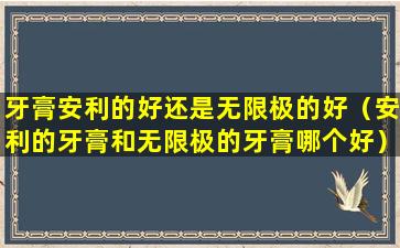 关于牙膏的选择,这是一个个人偏好和需求的问题。安利(Amway)和无限极(Infinitus)都是知名的直销公司,它们都生产并销售各种个人护理和健康产品,包括牙膏。以下是一些选择牙膏时可以考虑的因素: