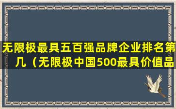 “无限极中国500最具价值品牌排行榜”并不是一个官方或广泛认可的品牌价值评估榜单。无限极是一家中国的直销公司,主要从事健康产品的研发、生产和销售。如果您在寻找关于中国品牌价值的排行榜,可能需要查找其他更为权威的榜单,例如由中国品牌建设促进会发布的“中国品牌价值评价信息发布”,或者由世界品牌实验室(World Brand Lab)发布的“中国500最具价值品牌”等。