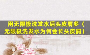 无限极是一家中国的健康产品公司,其产品线包括个人护理、健康食品等。如果您在使用无限极洗发水后发现头皮屑增多,这可能是由几个原因造成的: