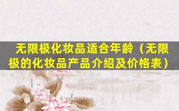 如果您想了解无限极具体某个化妆品产品的适用年龄,建议直接查看该产品的官方说明或联系无限极的客服获取更详细的信息。