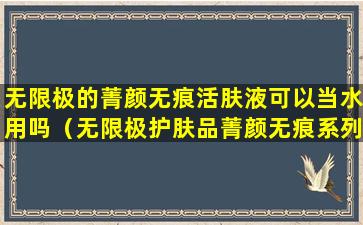 如果“菁颜无痕活肤液”的成分和功效与爽肤水相似,并且官方推荐可以作为爽肤水使用,那么理论上它可以当作水来使用。但是,如果产品的主要功效是抗衰老、修复或其他特定功能,并且官方说明中没有提及可以作为爽肤水使用,那么最好按照产品说明来使用,以确保达到最佳的护肤效果。