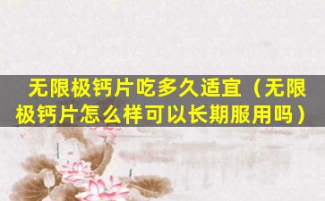 无限极钙片是一种补充钙质的保健品,其使用时间和剂量应根据个人的健康状况、年龄、性别、饮食习惯以及是否有钙质缺乏等因素来决定。一般来说,以下几点可以作为参考: