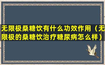 无限极是一家中国的保健品公司,其产品包括各种健康食品和营养补充品。关于“桑糖饮”治疗糖尿病的效果,首先需要明确的是,糖尿病是一种慢性疾病,需要通过合理的饮食、运动、药物治疗以及可能的胰岛素治疗来管理。