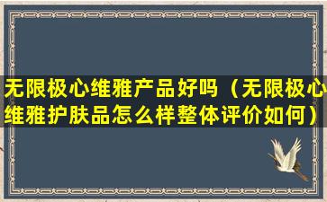 关于“无限极心维雅产品好吗”的问题,这取决于个人的使用体验和产品评价。以下是一些评估产品好坏的通用标准: