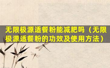 无限极源适餐粉是无限极公司生产的一款产品,它通常被宣传为一种营养补充品,旨在提供均衡的营养,帮助维持健康的生活方式。关于无限极源适餐粉的具体功效和使用方法,我无法提供详细信息,因为这需要基于产品的官方说明和科学研究。