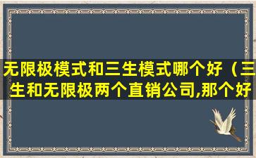 无限极(Infinitus)和三生(Young Living)都是知名的直销公司,它们分别在中国和国际市场上销售健康和保健产品。选择哪个模式更好,取决于个人的需求、偏好、市场定位以及对公司文化和产品的认同。以下是两个公司的一些对比信息,以帮助您做出决定: