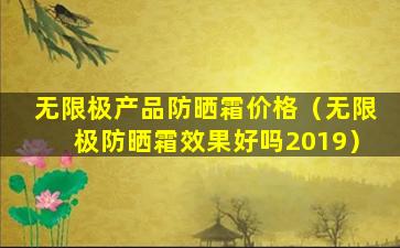 无限极(Infinitus)是一家中国的健康产品公司,隶属于李锦记健康产品集团。无限极提供多种健康和美容产品,包括防晒霜。由于产品价格可能会因地区、销售渠道和促销活动等因素而有所不同,我无法提供一个确切的价格。