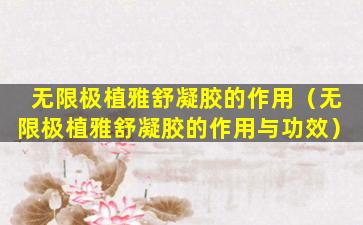 无限极植雅舒凝胶是无限极公司生产的一款产品,主要成分包括植物提取物等,旨在为肌肤提供舒缓和保湿的效果。以下是该产品可能的作用与功效: