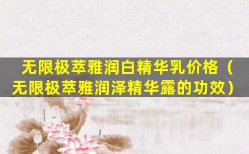 关于“无限极萃雅润白精华乳”的价格,由于产品价格可能会因地区、销售渠道、促销活动等因素而有所不同,因此无法提供一个确切的价格。通常,这类产品的价格范围可能在几十元到几百元人民币不等。