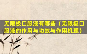 无限极(Infinitus)是一家中国的保健品公司,其产品线包括多种口服液,主要针对健康保健和疾病预防。以下是一些无限极口服液的例子:
