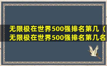 如果您想了解无限极的最新排名或者相关信息,建议查阅最新的《财富》世界500强榜单或无限极官方发布的最新资料。由于企业排名会随着每年的财务表现而变化,因此最准确的信息应以最新的数据为准。