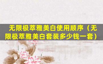 无限极(Infinitus)是一个中国的健康产品品牌,其产品线包括护肤品、保健品等。萃雅美白套装是无限极旗下的一款护肤产品,主要针对美白和护肤需求。
