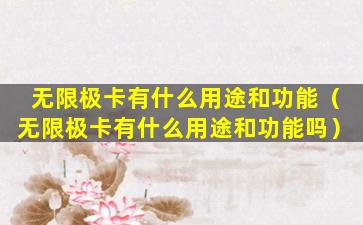 为了了解无限极卡的具体用途和功能,建议直接咨询无限极的官方渠道或者查看卡片的说明。如果您有具体的卡片信息,可以提供更多细节,以便获得更准确的解答。