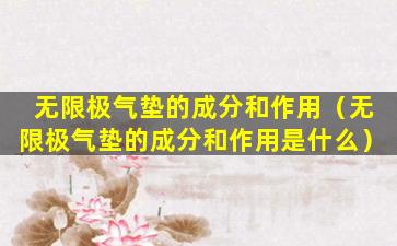 请注意,以上信息是基于一般气垫产品的描述,具体到无限极的气垫产品,其成分和作用可能会有所不同。建议查看产品包装上的成分列表和说明,或咨询无限极官方以获取最准确的信息。