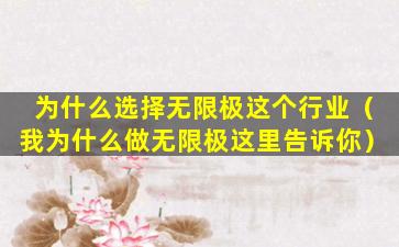 无限极(Infinitus)是一家中国的直销公司,主要从事中草药健康产品的研发、生产和销售。人们选择加入无限极这个行业可能有以下几个原因: