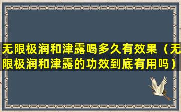 无限极润和津露是一种中草药饮品,宣称具有润肺、生津、止咳等功效。关于“喝多久有效果”的问题,这取决于多种因素,包括个人的体质、健康状况、饮用频率以及产品的实际效果等。