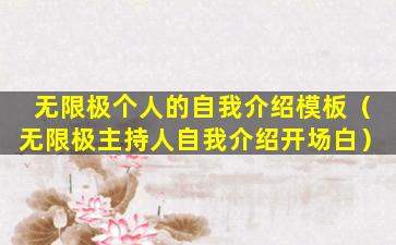 无限极(Infinitus)是一家专注于中草药健康产品的公司,成立于1992年,隶属于香港李锦记集团。以下是一个无限极个人的自我介绍模板,您可以根据自己的实际情况进行调整和补充: