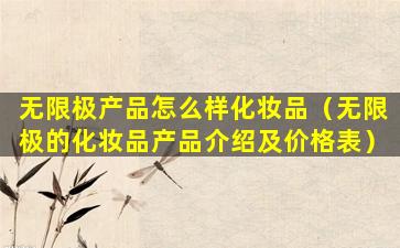 无限极(Infinitus)是一家中国的健康产品公司,隶属于李锦记健康产品集团。无限极提供多种健康产品,包括保健品、个人护理产品和化妆品。由于我无法访问最新的数据和价格信息,我无法提供无限极化妆品的最新产品介绍和价格表。