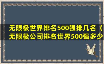 如果您需要无限极在特定排名中的具体位置,建议查阅最新的相关排名报告或直接访问无限极的官方网站以获取最准确的信息。由于排名数据会随时间和评估标准的变化而变化,我无法提供一个确切的排名数字。