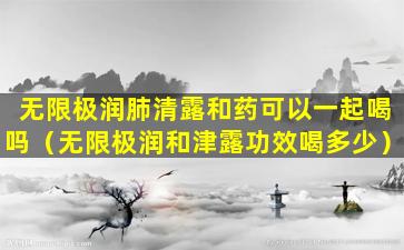 无限极润肺清露是一种保健品,其成分和作用可能与药物不同。在服用任何保健品或药物之前,建议您咨询医生或专业的医疗人员,以确保两者之间没有不良的相互作用,并且不会影响药物的效果或增加副作用的风险。