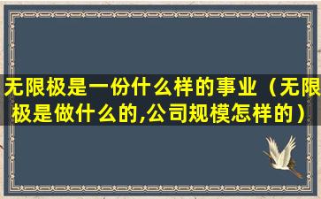 对于想要加入无限极的人来说,这份事业可能具有以下特点: