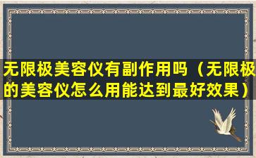无限极(Infinitus)是一家中国的健康产品公司,主要生产和销售中草药健康产品。关于无限极美容仪是否有副作用,这取决于具体的产品类型和使用方式。