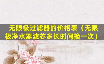 关于“无限极过滤器”的价格表和图片,我无法提供具体的信息,因为这可能涉及到商业机密或版权问题。如果您想了解无限极公司的产品信息,建议您直接访问无限极的官方网站或联系其官方客服获取最准确和官方的信息。