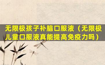 无限极是中国的一家直销公司,主要销售健康产品。关于“无限极孩子补脑口服液”,这可能是该公司推出的一款针对儿童的产品,旨在帮助儿童提高记忆力、注意力和学习能力。我无法提供该产品的具体信息,因为我的知识截止日期是2023年,且我无法访问实时数据库。