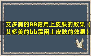 关于艾多美的BB霜使用后的皮肤效果,这通常取决于个人的肤质、使用方法以及产品的具体配方。一般来说,艾多美的BB霜可能会提供以下效果: