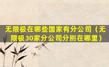 无限极(Infinitus)是一家中国的健康产品公司,隶属于香港李锦记集团。无限极在中国大陆设有多个分公司,这些分公司遍布全国各大城市,以便更好地服务其客户和经销商。以下是一些无限极分公司的例子,但请注意,这个列表可能不是最新的,因为公司可能会根据业务需求调整其分支机构: