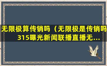 如果您想了解无限极是否被315晚会曝光,或者有关无限极的最新新闻,建议查阅最新的新闻报道或官方公告。同时,如果您对无限极的产品或销售模式有疑问,可以咨询相关部门或通过正规渠道获取信息。