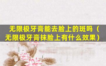 无限极牙膏主要是用于口腔清洁和护理,它的成分和设计都是针对牙齿和口腔环境的。虽然牙膏中可能含有一些美白或清洁成分,但它们并不适合用于面部皮肤,尤其是用于去除斑点。