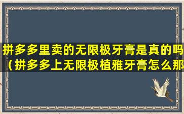拼多多是中国的一个大型电商平台,上面有很多商家销售各种商品,包括无限极牙膏。拼多多平台本身对商家有一定的审核机制,但仍然存在一些假冒伪劣商品的风险。