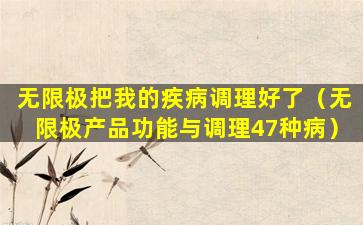 无限极是一家中国的保健品公司,其产品主要集中在健康食品、个人护理和家居护理等领域。关于“无限极产品功能与调理47种病”的说法,需要谨慎对待。