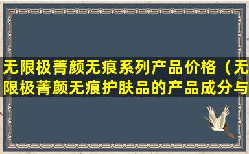 为了了解“无限极菁颜无痕护肤品”的具体成分和功效,建议直接查阅产品包装上的成分列表,或者访问无限极官方网站或官方授权的销售渠道获取最新、最准确的产品信息。同时,也可以咨询专业的皮肤科医生或美容顾问,以获得个性化的护肤建议。