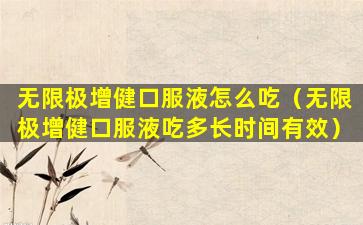 无限极增健口服液是一种保健品,其使用方法通常会在产品包装或说明书上有所说明。一般来说,口服液的使用方法是直接口服,但具体的剂量和使用频率需要根据产品说明来确定。