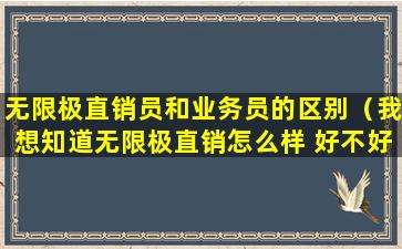 无限极是一家中国的直销公司,主要销售健康产品。在直销行业中,直销员和业务员是两个不同的角色,它们之间存在一些区别: