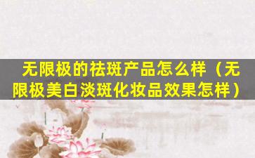 无限极(Infinitus)是一家中国的健康产品公司,隶属于香港李锦记集团。无限极提供多种健康和美容产品,包括化妆品。关于无限极的祛斑产品,以下是一些可能的信息: