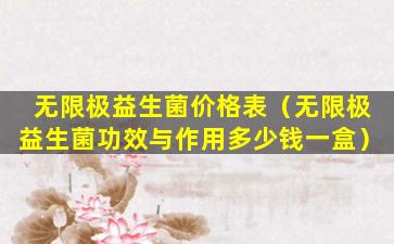 由于产品价格可能会随时间、地区、促销活动等因素变化,我无法提供实时的“无限极益生菌价格表”。如果您想了解无限极益生菌的最新价格,建议您直接访问无限极的官方网站、授权的零售商或通过官方客服渠道获取最准确的信息。