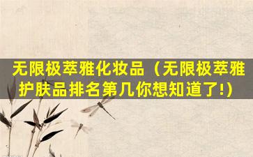 如果您想了解无限极萃雅护肤品的具体排名,建议查阅最新的市场研究报告、消费者调查或者专业的美妆评测网站。这些资源通常会提供更为详细和权威的市场分析。